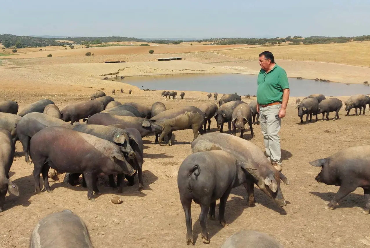 Joaquín has been a farmer by vocation and profession for 50 years. He currently manages six farms, where he rears sheep, cattle and pigs, both Iberian and his own crosses. On all the farms, the animals are bred extensively, meaning they are free to roam the pastures of Extremadura.