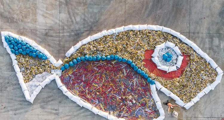 “We collected two truckloads of rubbish, consisting of mainly plastic bags, straws, pieces of wastepaper and cotton pieces. We used colourful bits of plastic to create a giant fish, which we displayed on the factory premises for a few days.
