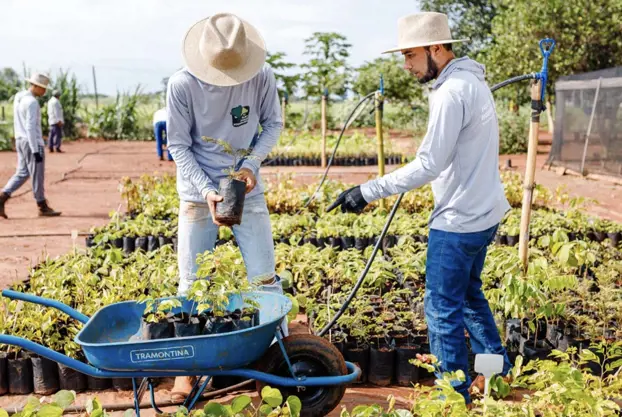 De Heus Brazil team was invited to join the seedling production process at the forest nursery. During this day they participated in a permanent preservation area where restoration activities around the Santa do Araguaia Park took place