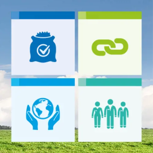 In 2024, we defined a green goal for each priority topic. You can find more about our priority topics on the pillar pages: Feed for Food, Sustainable Supply Chain, Thriving Employees, and Fostering Communities.